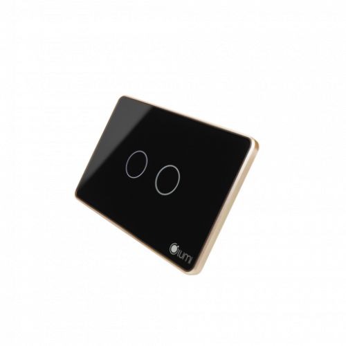 | Công tắc 2 nút kính phẳng viền vàng |