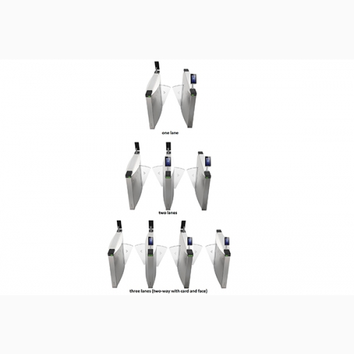 - Cổng xoay bật dọc dạng cánh (Flap Barrier) kiểm soát cửa vào ra nhận diện khuôn mặt và thẻ.