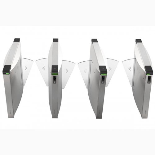 - Cổng xoay bật dọc dạng cánh (Flap Barrier) kiểm soát cửa vào ra dùng thẻ và vân tay.