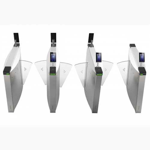 - Cổng xoay bật dọc dạng cánh (Flap Barrier) kiểm soát cửa vào ra nhận diện khuôn mặt và thẻ.