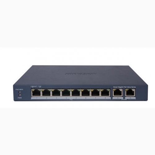 - 8 × Gigabit PoE port, 2 × Gigabit RJ45 port.